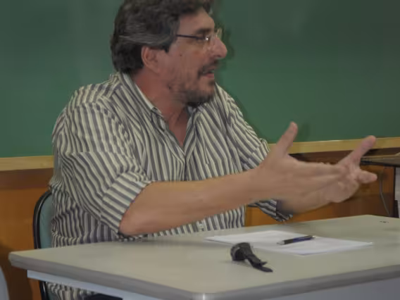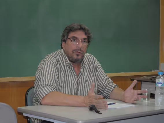O Professor Ricardo Salles oferece sua palestra 'Classe, região e Estado nacional no Império do Brasil' a professores e alunos do Departamento de Hstória da PUC-Rio, em outubro de 2011.