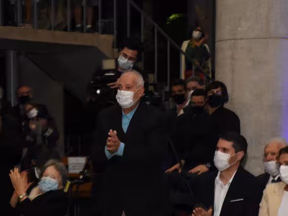 O representante dos funcionários e presidente da Associação de Funcionários (AFPUC), Davison Coutinho, discursa durante a cerimônia de posse.