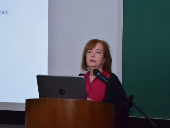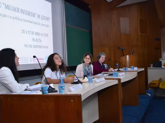 Dee Brillenburg Wurth, Conselheira de Proteção de Crianças dasNações Unidas, na palestra Entre Brinquedos e Fuzis: A Militarização da Infância no Mundo Contemporâneo, promovida pelo Departamento de Relações Internacionais.