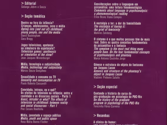 Código exclusivo ab0026_007 Coleção Revista Psicologia Clínica (Coleção) Data de criação 01/01/2004 Natureza do documento imagem Tipo de documento revista Descrição contracapa