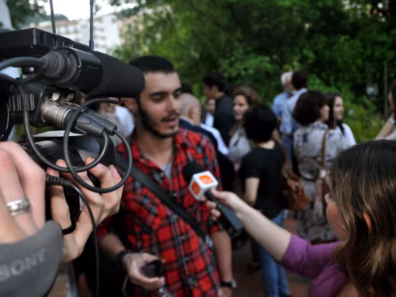 O reitor pe. Josafá Carlos de Siqueira, S.J., entrega prêmio para o 1º colocado da categoria fotografia colorida do Iº Concurso de Fotografia da PUC-Rio.