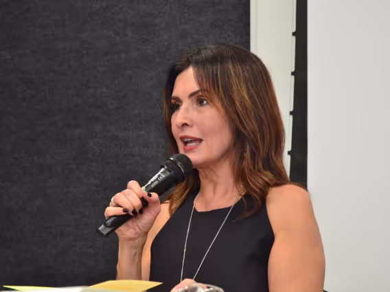 Paula Cesarino Costa, Editora de Diversidade e ombudsman da Folha de S.Paulo de 2016 a 2019, na primeira palestra sobre os desafios do jornalismo brasileiro da 1º Semana de Jornalismo.