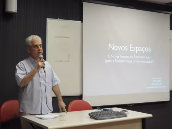 Código exclusivo yg0032_010 Coleção VIII POSCOM - Seminário dos Alunos do Programa de Pós-Graduação em Comunicação da PUC-Rio Data de criação 23/11/2011 Natureza do documento imagem Tipo de documento fotografia cor Descrição Palestrante fala sobre novos espaços e novas formas de representação.