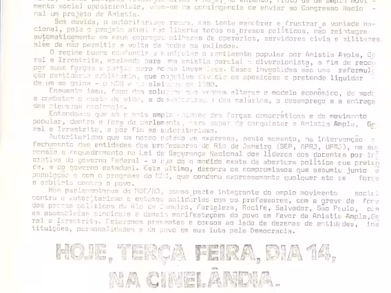 Página 06. Centro Acadêmico, DAT, extinção do MDB, pró-PT e pró-PTB, PMDB, campanha a favor da realização de eleições municipais de 1980, apoio à greve dos metalúrgicos.