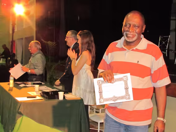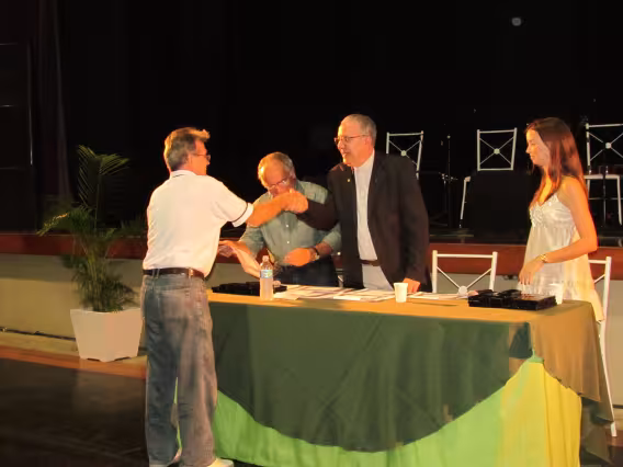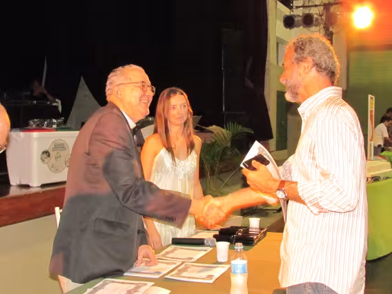 O Vice-reitor prof. Augusto Sampaio sendo cumprimentado na festa realizada pelo seu aniversário.