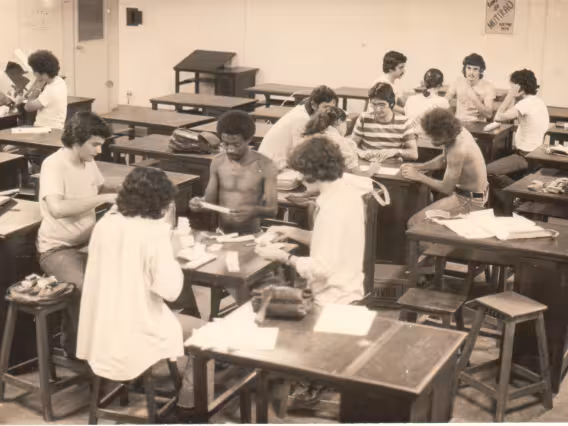 Acampamento montado pelos multiplicadores visitantes do Ginga-Brasil II, em sala de aula da PUC-Rio.