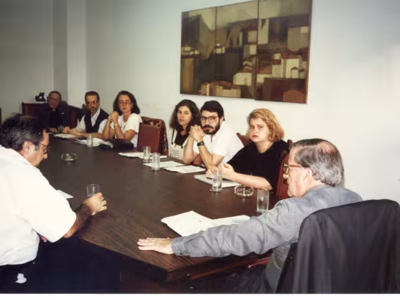 Assinatura de convênio entre a PUC-Rio e a Fundação Mudes. O convênio concedeu 35 bolsas para projetos de alunos nas áreas de informática e computação dentro do Programa de Recursos Humanos de Alto Desempenho (PRHAD).