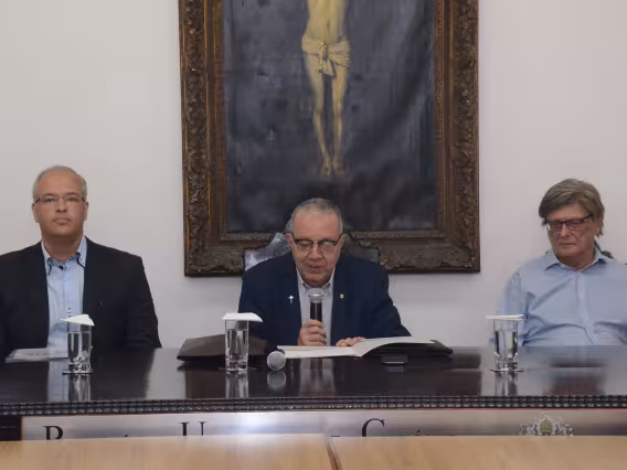 O professor Danilo Marcondes de Souza Filho, Coordenador Central de Internacionalização da Universidade e a diretora do Instituto Confucius Ana Qiao com representantes da Universidade Nankai.