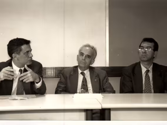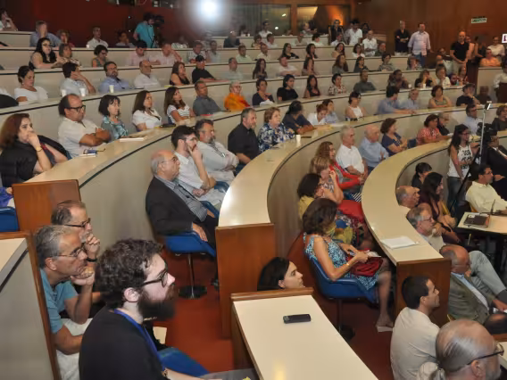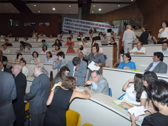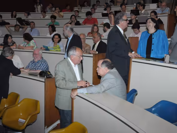 A professora Margarida de Souza Neves cumprimenta o novo Decano do CTC, professor Silva Mello.