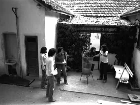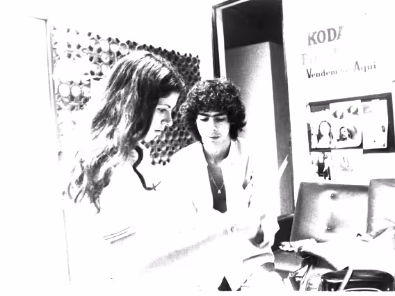 Alunos na secretaria do CUF. Propaganda de filmes Kodak.
