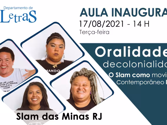 Palestrantes: Slam das Minas RJ, coletivo artístico que organiza uma batalha lúdico-poética de forma itinerante e mensal no Estado do Rio de Janeiro. Formado pelas poetas Andrea Bak, Genesis, Moto Tai, Rainha do Verso e Tom Grito.