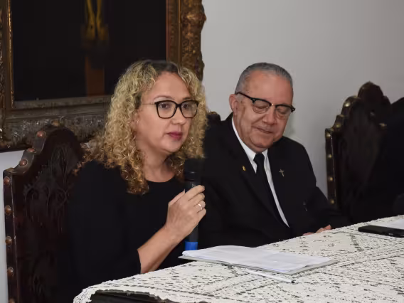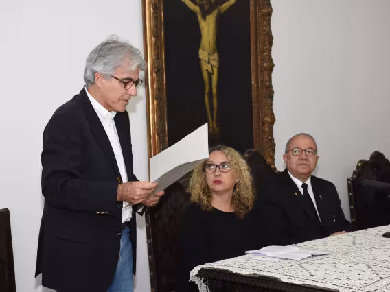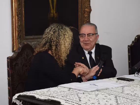 O professor José Bergmann faz a leitura do documento de posse da nova diretora do IRI, profa. Marta Regina Fernandez y Garcia.