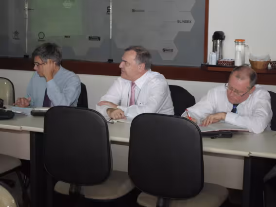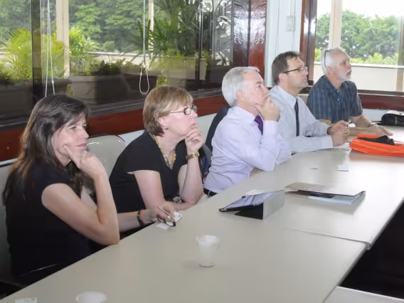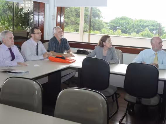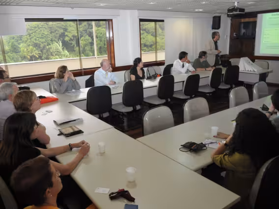 Professor Reinaldo Calixto apresenta balanço dos cursos da PUC-Rio para a delegação da Queensland University.