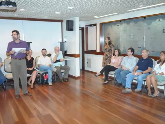 O Prof. Marcantonio Giuseppe Maria Carlo Fabra (INF) recebe certificado em homenagem do CTC por excelência docente.