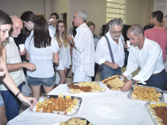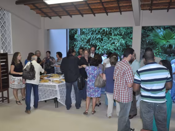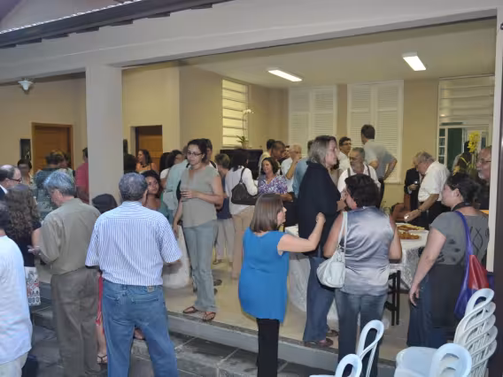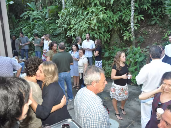 Alunos da primeira turma do curso de Ciências Biológicas da PUC-Rio em torno do reitor pe. Josafá Carlos de Siqueira, S.J.