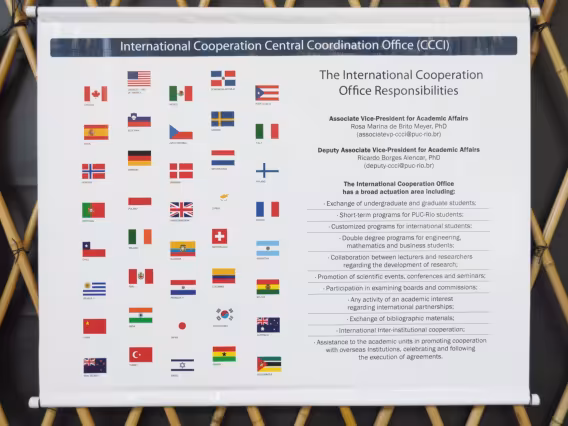 Código exclusivo jp0009_005 Coleção Evento comemorativo dos 20 anos da CCCI Data de criação 04/06/2012 Natureza do documento imagem Tipo de documento fotografia cor Descrição Banner com matérias sobre o CCCI na mídia e depoimentos de alunos intercambistas.