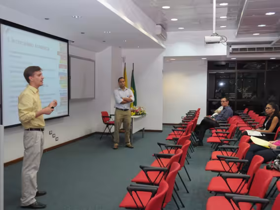 Palestra sobre intercâmbio acadêmico durante o evento.