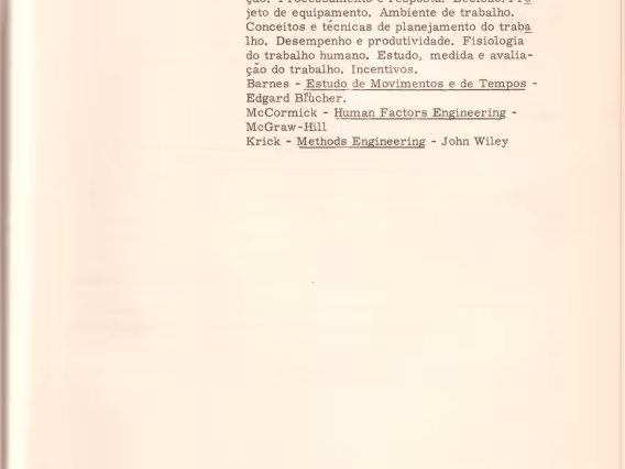 Código exclusivo cg0065_055 Coleção Catálogo 1969/1970 - Pós Graduação Data de criação 01/01/1968 Natureza do documento imagem Descrição p.51a - Engenharia Industrial - Ementa das Disciplinas