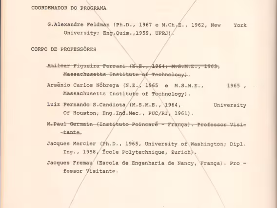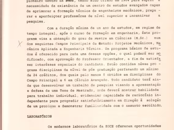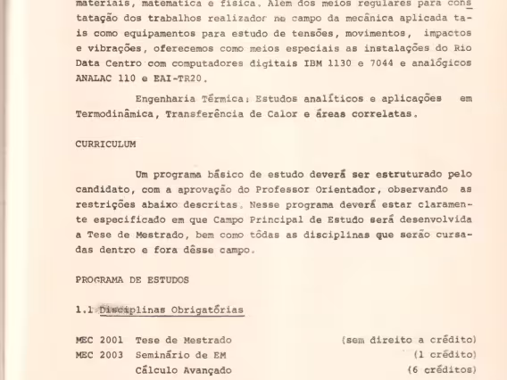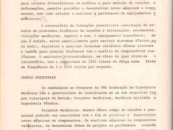 Código exclusivo cg0065_056 Coleção Catálogo 1969/1970 - Pós Graduação Data de criação 01/01/1968 Natureza do documento imagem Descrição p.52 - Engenharia Mecânica - página riscada com correções no texto
