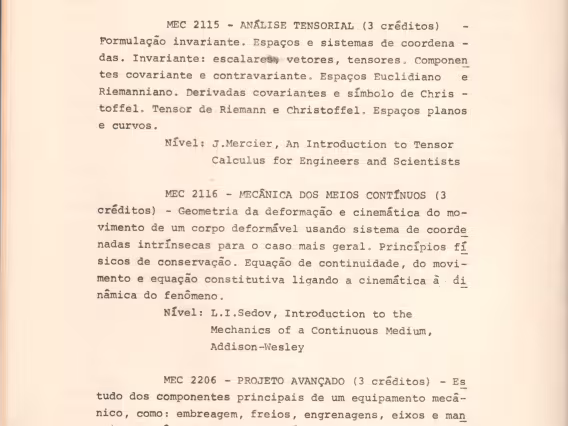 Código exclusivo cg0065_062 Coleção Catálogo 1969/1970 - Pós Graduação Data de criação 01/01/1968 Natureza do documento imagem Descrição p.58 - Engenharia Mecânica - Programa das Disciplinas