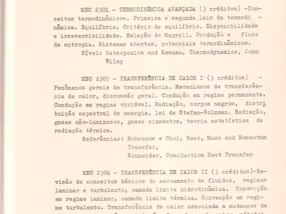 Código exclusivo cg0065_060 Coleção Catálogo 1969/1970 - Pós Graduação Data de criação 01/01/1968 Natureza do documento imagem Descrição p.56 - Engenharia Mecânica - Programa das Disciplinas