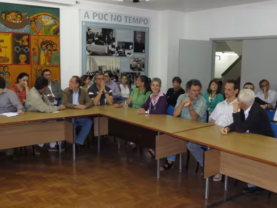 Pe. Josafá cumprimenta o prof. Arndt von Staa, do Departamente de Informática.