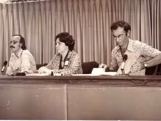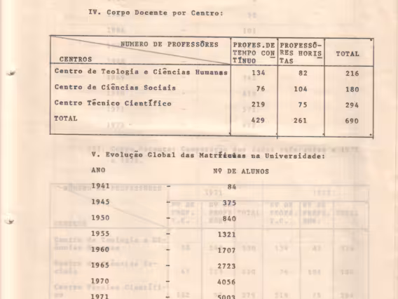O Grão-Chanceler da PUC-Rio, cardeal dom Eugênio de Araújo Sales, e o reitor pe. João Augusto Anchieta Amazonas Mac Dowell S.J. participam da mesa de abertura do Seminário Interno do Centro de Ciências Sociais. O evento, coordenado pela Vice-reitoria de Desenvolvimento, debateu a função da pesquisa, as fontes de financiamento, a relação ensino-pesquisa e promoveu a troca de informações e a integração entre os diretores e os professores dos departamentos constitutivos do CCS para a elaboração de um Plano Diretor da PUC-Rio. O seminário foi realizado entre os dias 05 e 06 de setembro de 1979 no Centro de Estudos e Formação do Sumaré.