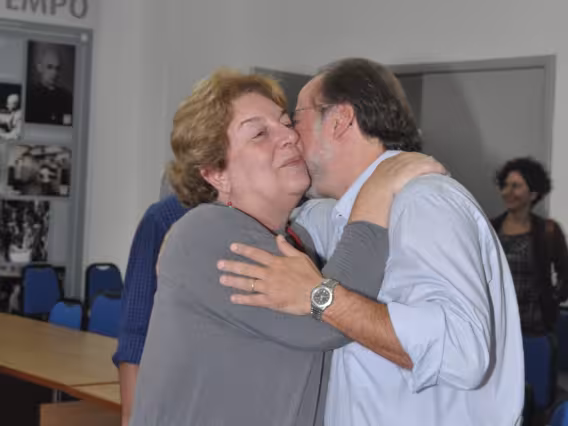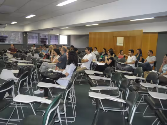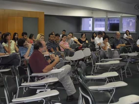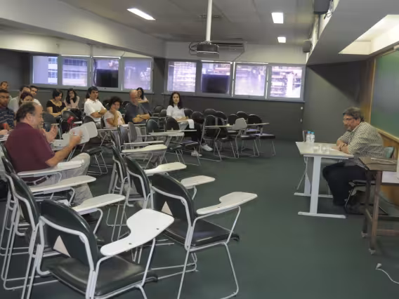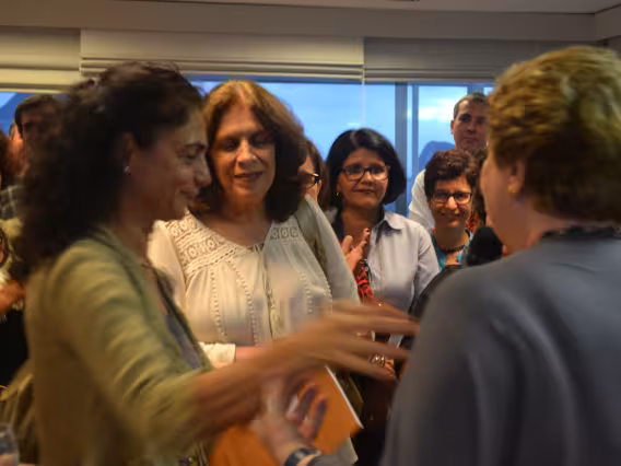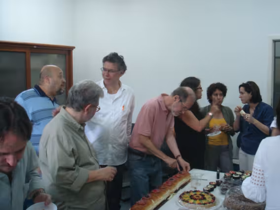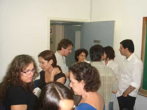 Professores, funcionários e convidados participam do coquetel realizado no pátio do Solar.