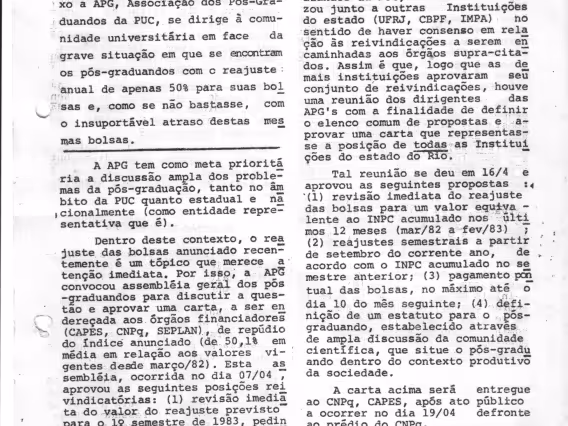 p.3 e 4 - Evolução das bolsas de Pós-Graduação. Conselho de representantes por departamentos.
