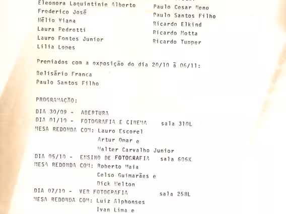 Propaganda da mostra fotográfica de Belisário França, realizada nos pilotis do Edifício da Amizade de 20/10 a 06/11, ano incerto.