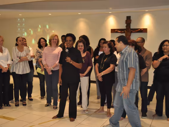 A diretora do Solar Grandjean de Montigny, profa. Margarida de Souza Neves, discursa na solenidade de inauguração da Biblioteca Irma Arestizábal.
