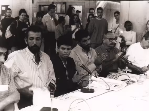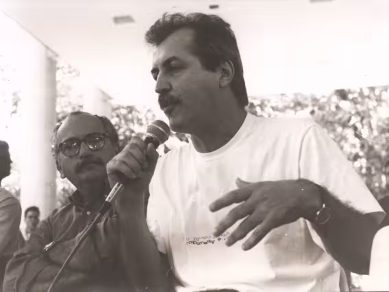 Alunos na Assembleia dos estudantes no pilotis do Kennedy, promovido pelo DCE.