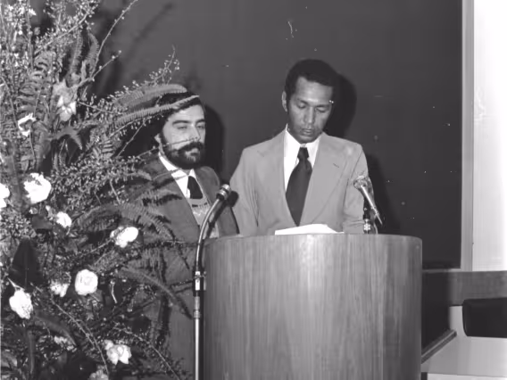 Código exclusivo cg0084_053 Coleção Acervo de negativos do fotógrafo Antônio Albuquerque (cont.3) Data de criação 01/01/1975 Descrição Momento de discurso no palanque durante a cerimônia de formatura.