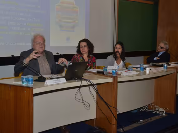 Mesa com palestrantes do Painel 4: a ONU e os objetivos de desenvolvimento sustentável.