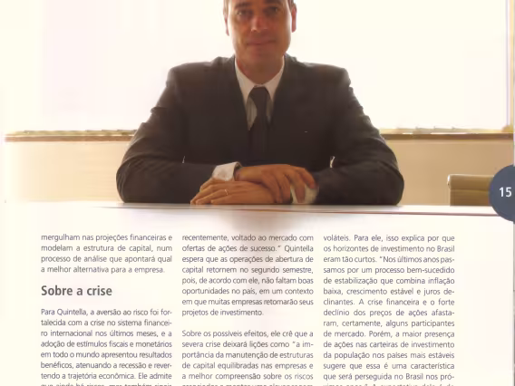 Código exclusivo pv0009_015 Coleção Revista PONTES #1 Data de criação 01/01/2009 Descrição Entrevista de Antonio Quintella, presidente da Credit Suisse no Brasil, à Revista PONTES, n°1 (página 15)