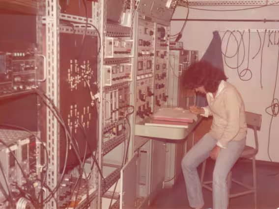 Visita do Reitor pe. Mac Dowell S.J. ao stand da PUC-Rio no XIII Congresso Nacional de Processamento de Dados. Nele foram exibidos os produtos dos programas de pesquisa do LED - Laboratório de Eletrônica Digital, e do LESC - Laboratório de Sistemas de Computação.