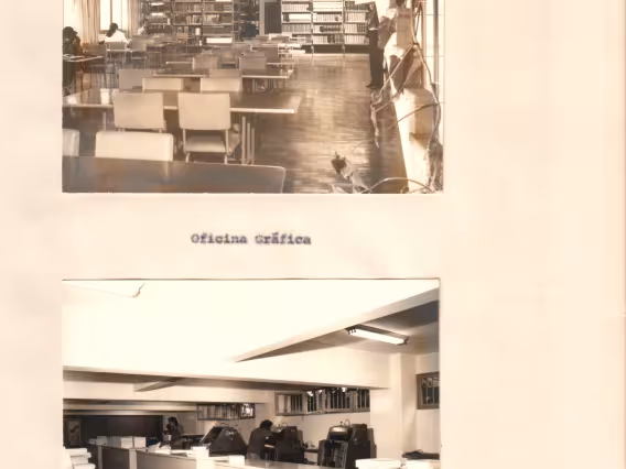 Código exclusivo cg0017_054 Coleção Credenciamento do Curso de Mestrado em Engenharia Industrial (Produção) no Conselho Federal de Educação - 1973 Data de criação 01/01/1973 Natureza do documento imagem Tipo de documento fotografia PB Descrição Fotografias do salão de leitura da Biblioteca Central e da Oficina Gráfica.