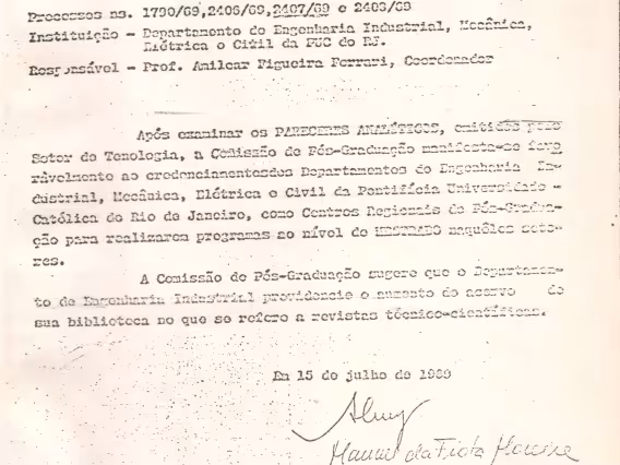 Código exclusivo cg0017_060 Coleção Credenciamento do Curso de Mestrado em Engenharia Industrial (Produção) no Conselho Federal de Educação - 1973 Data de criação 01/01/1973 Descrição Página 20. Informe sobre Parecer do Conselho Nacional de Pesquisas sobre o credenciamento dos cursos de Pós-graduação do CTC, em 1969, e solicitação ao Departamento de Engenharia Industrial que aumente o acervo de sua biblioteca.