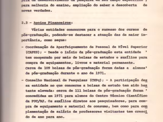 Código exclusivo cg0017_009 Coleção Credenciamento do Curso de Mestrado em Engenharia Industrial (Produção) no Conselho Federal de Educação - 1973 Data de criação 01/01/1973 Descrição Página 13. Principais instituições que financiam os cursos de pós-graduação.