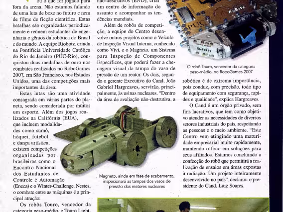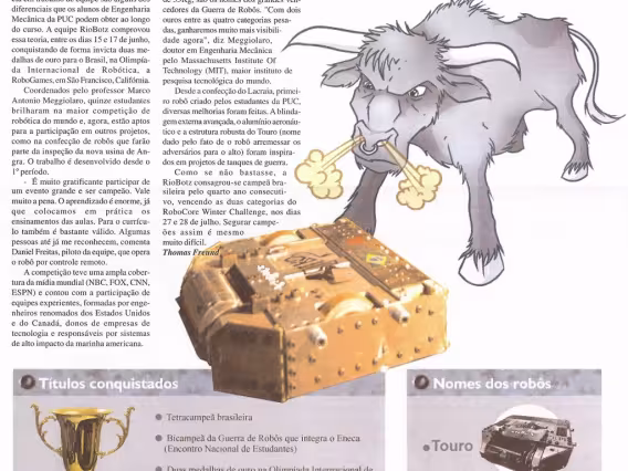 Artigo do suplemento Globinho, do O Globo: "Um robô no gelo", "Ciclone, o robô guerreiro que sabe patinar". Imagem do robô Ciclone com crianças.