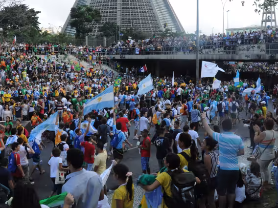Policiais militares observam a movimentação de peregrinos.