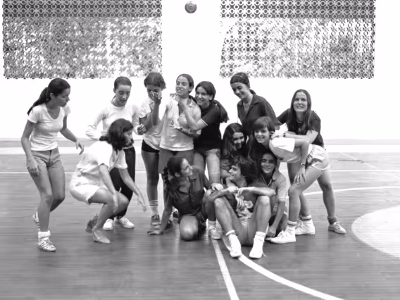Código exclusivo ak0013_015 Coleção Acervo do professor Alfredo Jefferson relacionado à eventos na PUC-Rio Data de criação 01/01/1979 Natureza do documento imagem Tipo de documento negativo PB Descrição Alunas posam após jogo de futebol de salão.