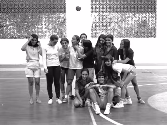Código exclusivo ak0013_016 Coleção Acervo do professor Alfredo Jefferson relacionado à eventos na PUC-Rio Data de criação 01/01/1979 Natureza do documento imagem Tipo de documento negativo PB Descrição Alunas posam após jogo de futebol de salão.