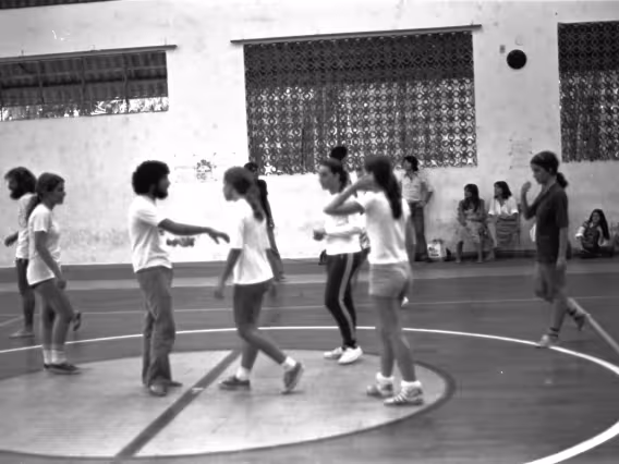 O galpão do ginásio fora construído e utilizado na época da inauguração do campus, em julho de 1955, mas só concluído em 1957. O Padre Ormindo Sodré Viveiros de Castro S.J., na época Secretário Geral da Universidade, fazia parte da diretoria do Centro de Educação Física e Artística. Ficava onde desde 2005 está a Igreja do Sagrado Coração de Jesus.