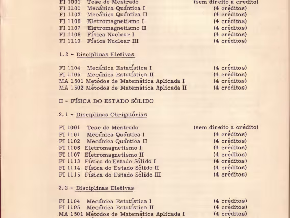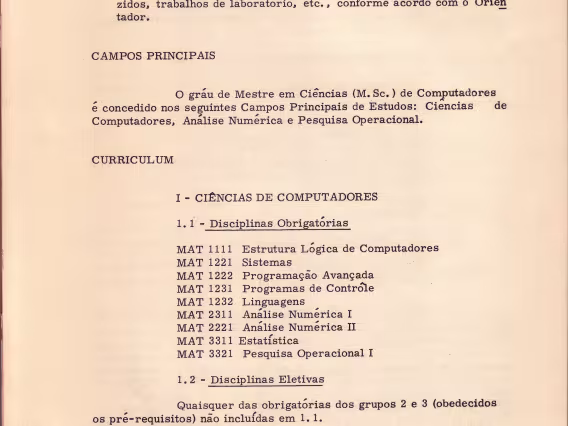 Seção referente à 'Matemática', que contém as ementas das disciplinas, no Catálogo oficial da Escola Graduada de Ciências e Engenharia (EGCE), 1968 - 1969.