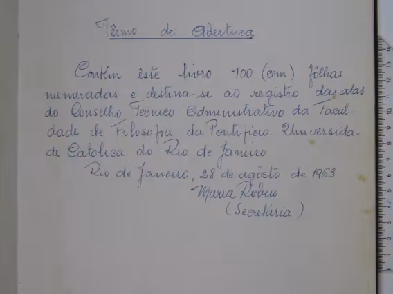 Anexo referente à ata 93 do Conselho Técnico Administrativo da Faculdade de Filosofia. Na imagem em destaque assunto referente às modificações no regimento.