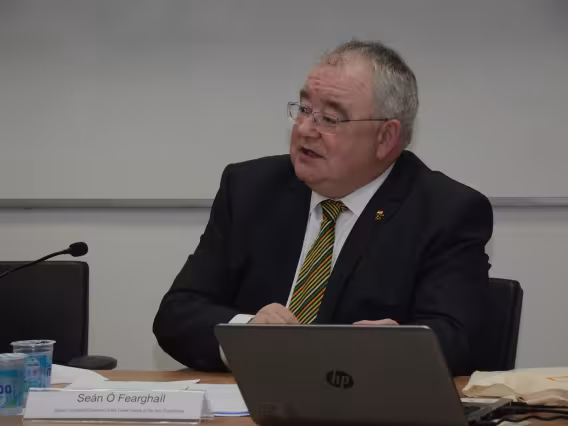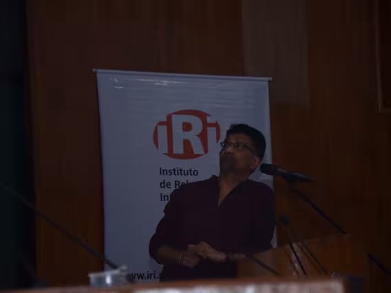 A professora do Instituto de Relações Internacionais Prof. Paula Sandrin; o Prof. Leslie Bethell do CEBRI; a Prof. Monica Herz do Instituto de Relações Internacionais e na ponta o membro do Ceann Comhairle (Speaker) da Lower House do Parlamento Irlandês, Seán Ó Fearghaíl na