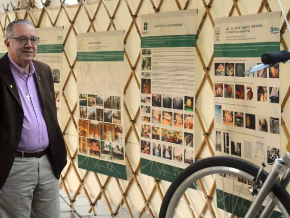 O Reitor da PUC-Rio, Pe. Josafá Carlos de Siqueira S.J., em visita à exposição conversa com os professores Mario Seixas e Khosrow Ghavami.