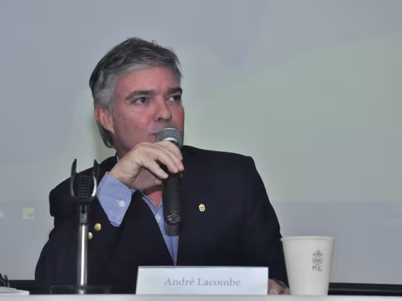 Código exclusivo ac0028_005 Coleção XXV Semana do Meio Ambiente Data de criação 05/06/2019 Natureza do documento imagem Tipo de documento fotografia cor Descrição O professor André Lacombe, do Departamento de Administração, na palestra sobre visões da Amazônia.