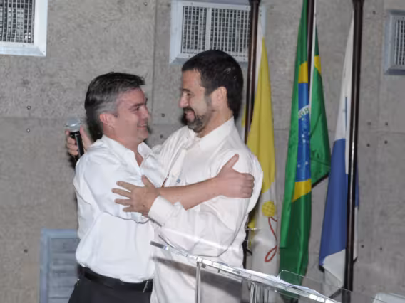 Código exclusivo rl0016_111 Coleção XX Seminário de Iniciação Científica da PUC-Rio 2012 Data de criação 31/08/2012 Natureza do documento imagem Tipo de documento fotografia cor Descrição Professor Sidnei Paciornik parabeniza o professor André Lacombe pela homenagem recebida.
